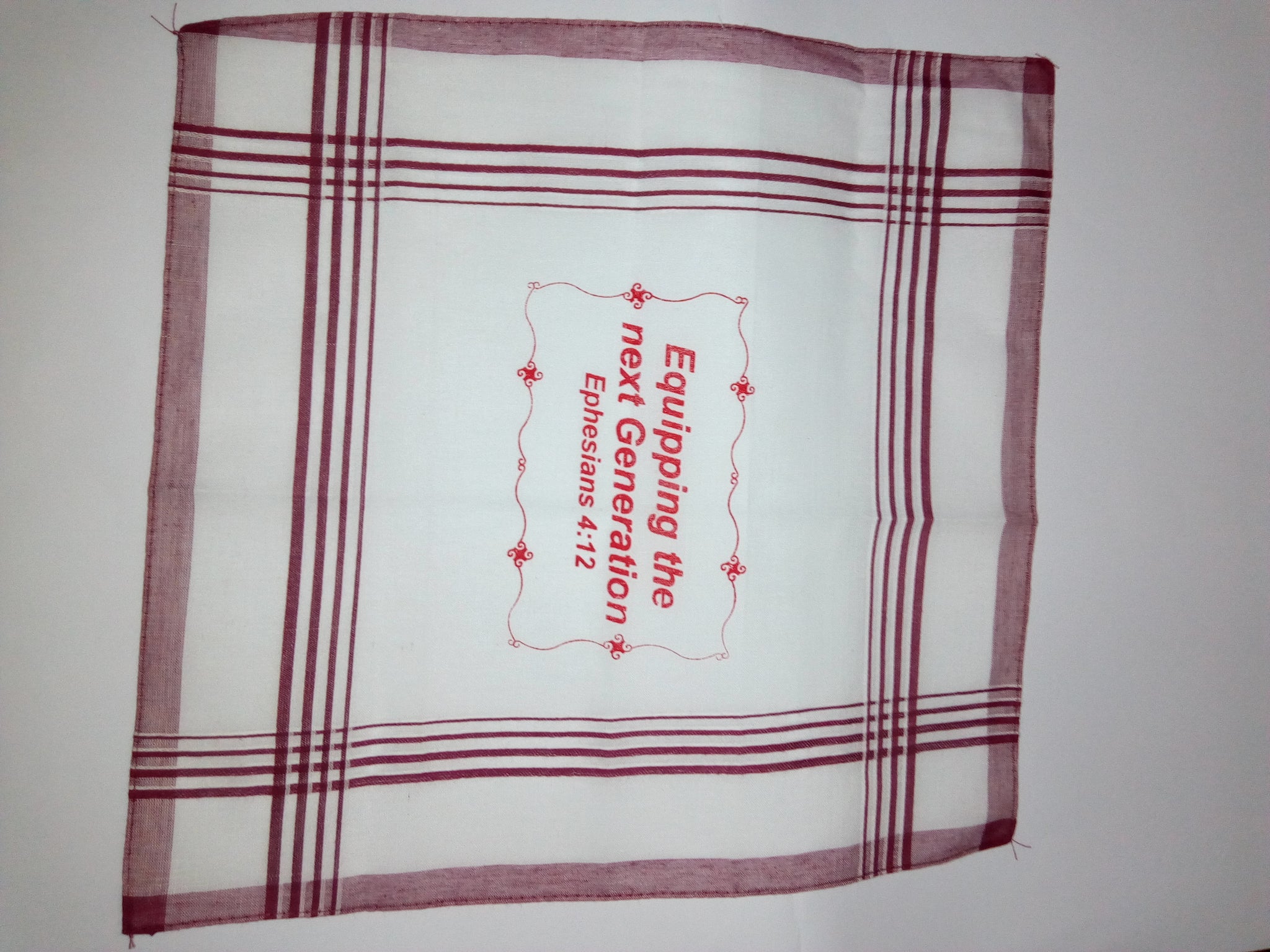 Beautiful Handkerchief with Christian message "Equipping the Next Generation. Ephesians 4:12."