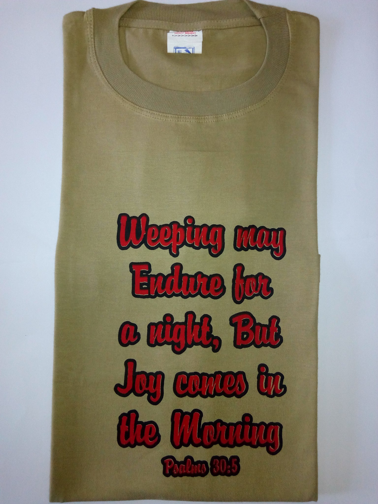 Beautiful Adult T-shirt with Christian Bible verse "Weeping may Endure for a Night, But Joy comes in the Morning. Psalms 30:5."